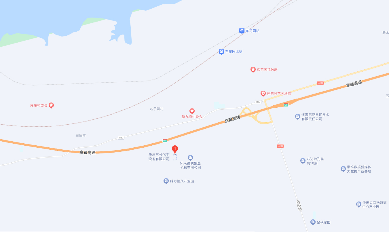 自駕線路:從北京北三環(huán)駛?cè)刖┎馗咚?,按導航行駛到懷來華昌氣分化工設(shè)備有限公司,行程大約 80 公里。