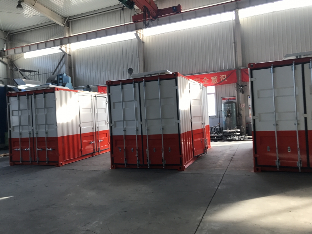 集裝箱內(nèi)各部件布置合理,空壓機(jī)風(fēng)冷氣體沿風(fēng)道排出箱外、防爆風(fēng)機(jī)強(qiáng)力通風(fēng),有效降低箱內(nèi)溫度。內(nèi)部設(shè)兩個(gè)